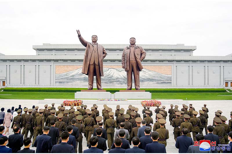 偉大な金日成主席と偉大な金正日国防委員長が生前の姿で安置されているチュチェの最高聖地クムスサン太陽宮殿の広場公園に入った人たちは、金日成主席と金正日国防委員長に最も崇高な敬意を表しました。
