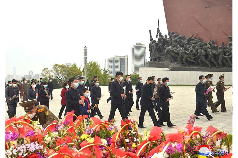 金日成主席と金正日国防委員長の銅像に党と政権機関、武力機関、大衆団体、各省、中央機関、朝鮮人民軍、社会安全軍の各部隊、ピョンヤン市内の各機関、企業、工場などの名義の花かごと花束が捧げられました。