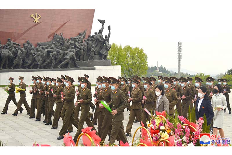 朝鮮人民革命軍創建91周年に際してテソン山革命烈士陵に花輪が捧げられました