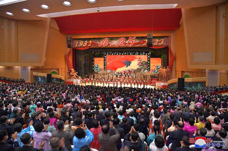 朝鮮人民革命軍創建91周年記念国防省協奏団の歌と踊りのアンサンブルが25日、4月25日文化会館で行われました。