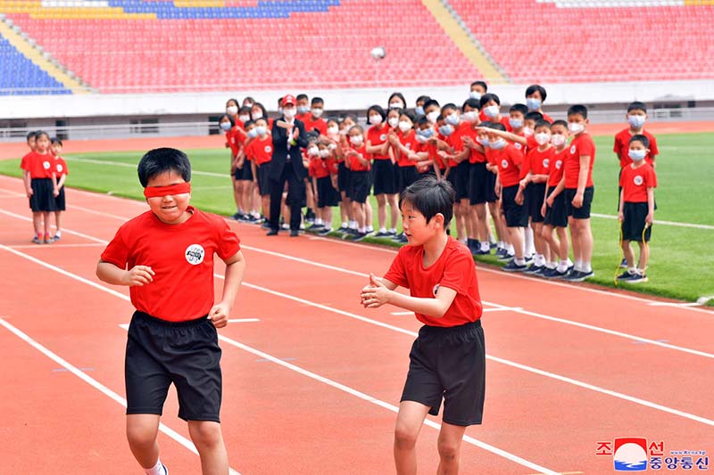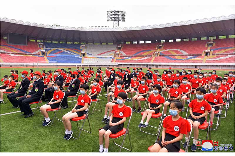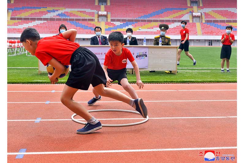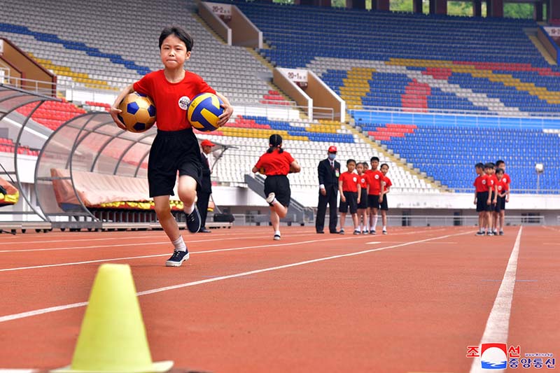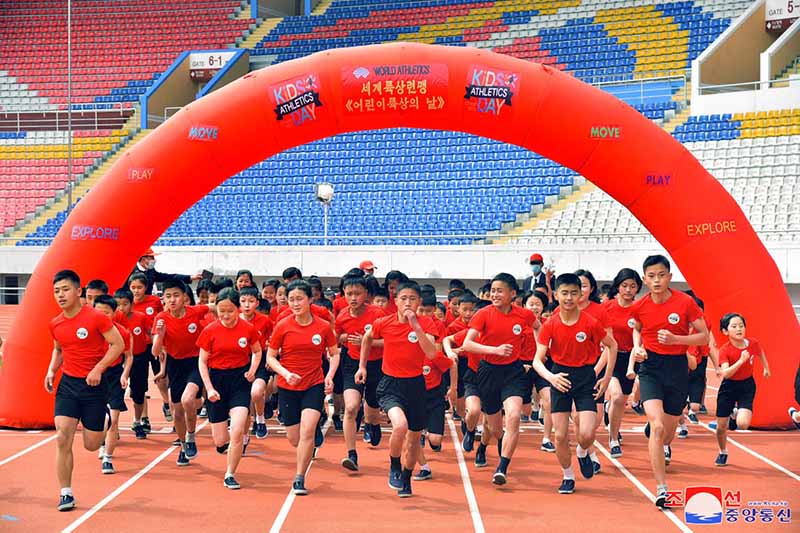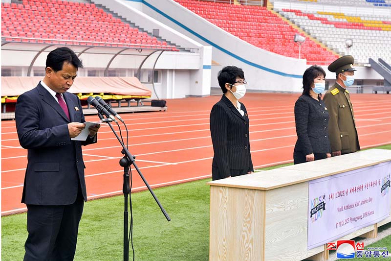 金日成競技場で行われた記念行事に、朝鮮民主主義人民共和国陸上協会の人、アムノッカンスポーツ団、ラクラン区域課外青少年スポーツ学校などの監督、インストラクター、学生が参加しました。