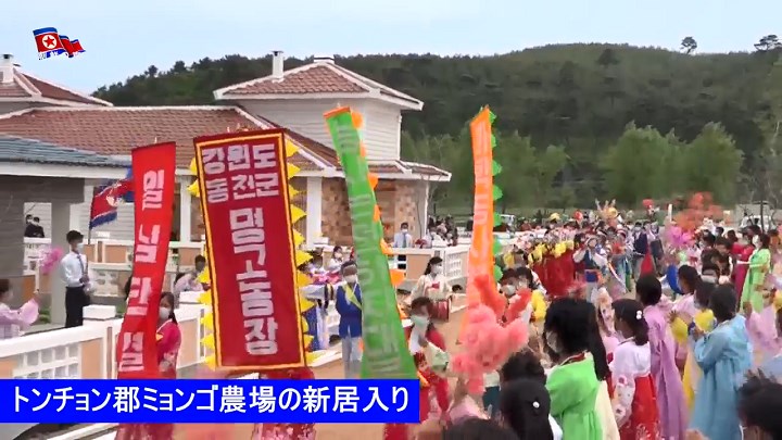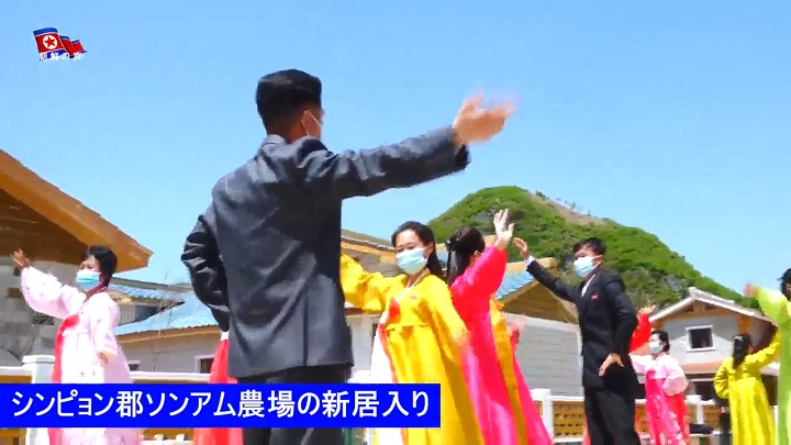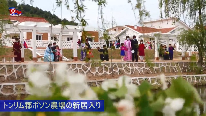 活動家達の祝いを受けて新居入りする農業勤労者達は、「国で立派に建てた住宅を無料で充てがい新時代の農村文明を享受するよう深い恩情を施す母なる労働党、共和国がこの世で一番だ」とし、「労働党万歳、社会主義万歳」の声を高く上げました。