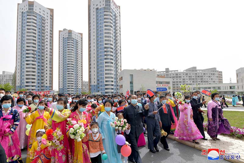 キム総理は、敬愛する金正恩総書記の格別の関心の中、推進されて来たテピョン地区の住宅建設が完工して、立ち退き所帯の住民が新居入りすることになった、こう述べ、総書記の恩情こもる立派な住宅をあてがわれた住民を党中央委員会と共和国政府の名で熱く祝いました。
