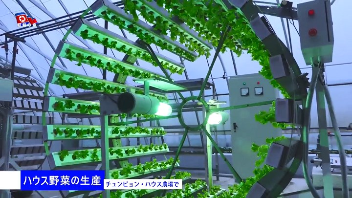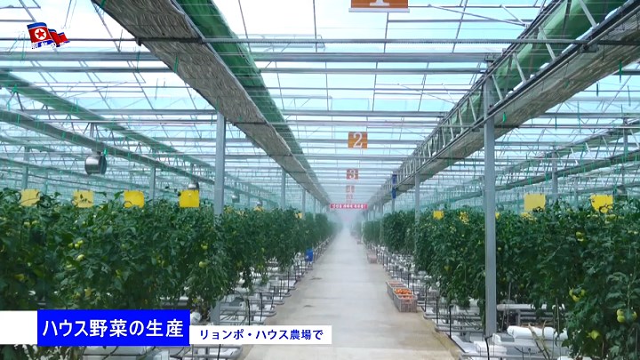 咸鏡北道の仲坪ハウス農場でも栽培の化学科・集約化のレベルを高めるのに力を入れてトマト・キュウリ等の収穫を増やすと共に、円筒型栽培方法を新たに導入して生育期日を短縮し省力ながら単位面積当たりの野菜の産量を土壌栽培より大幅に増やしています。