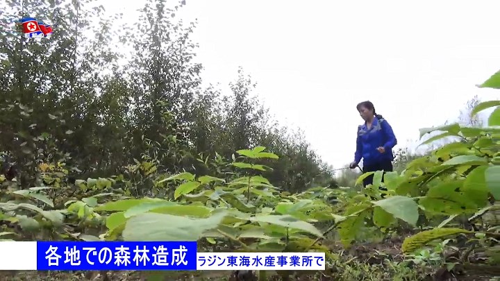 羅津東海水産事業所の従業員は愛国心を持って担当した森林の管理を着実に行い、海を控えた地帯の特性に合わせて苗木の肥培管理と植えた樹木の管理に念を入れています。