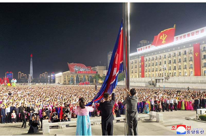 偉大な党の導きに従って社会主義の国の尊厳と威容を世界に馳せる人民の大きな誇りと喜びが国のいたるところに満ち溢れる中、朝鮮労働党創立78周年に際して、金日成広場で国旗掲揚式が行われました。