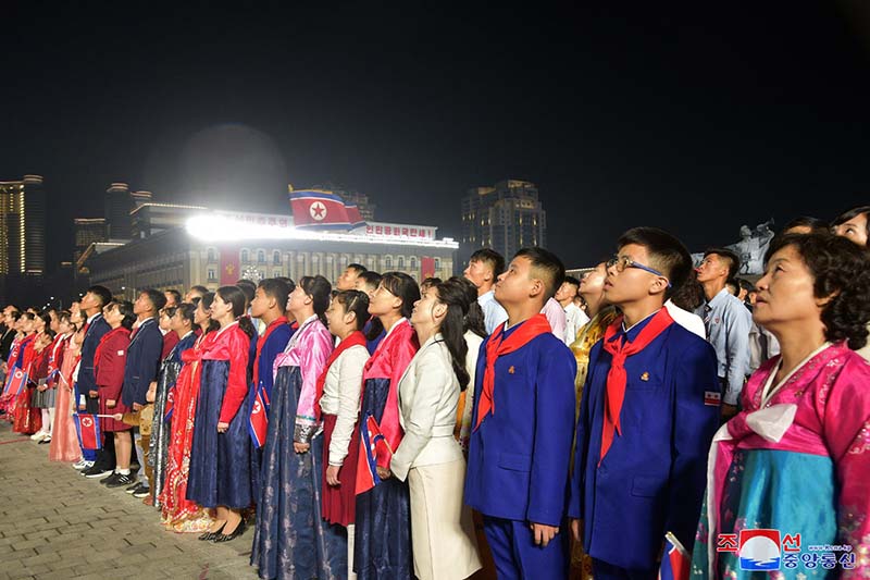 意義深い10月の祝日を迎えて色とりどりの花火が一斉に打ち上げられ、ピョンヤンの夜空を華やかに飾りました。
