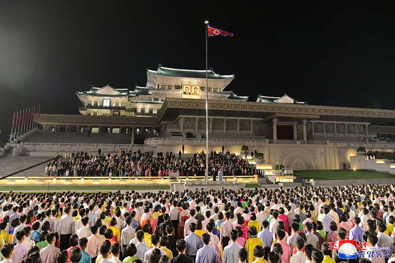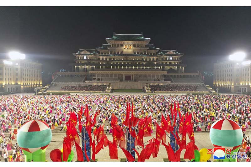 栄えある朝鮮労働党創立78周年を祝って、ピョンヤンの金日成広場で9日の夜、ピョンヤン市の青年学生の夜会が開かれました。