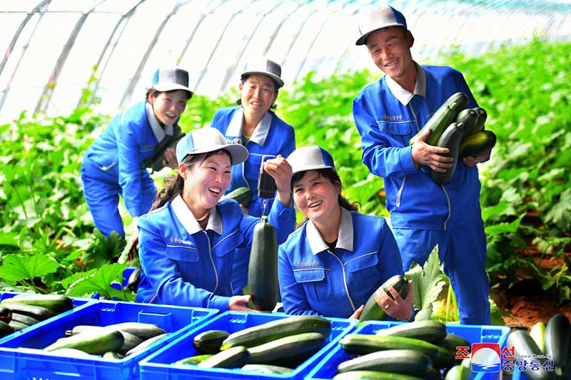カンドン総合温室で収穫した初物の野菜がピョンヤン市民に供給されました