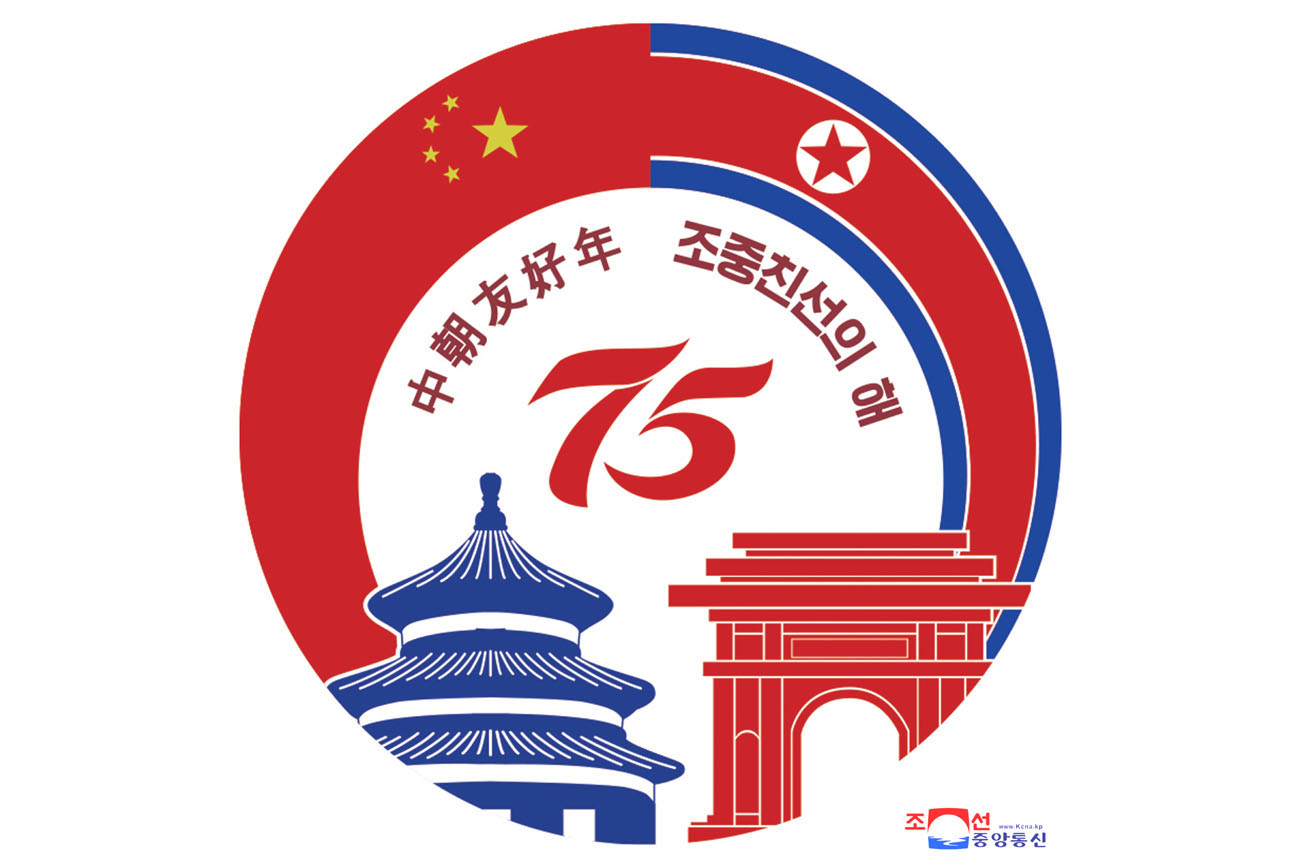 マークには、藍と紅の共和国の旗と中国の五星紅旗、外交関係樹立75周年を象徴する数字である「75」と「朝中友好の年」という字が書かれており、朝鮮の凱旋門と中国の古い歴史文化遺跡である天壇祈年殿が描かれています。