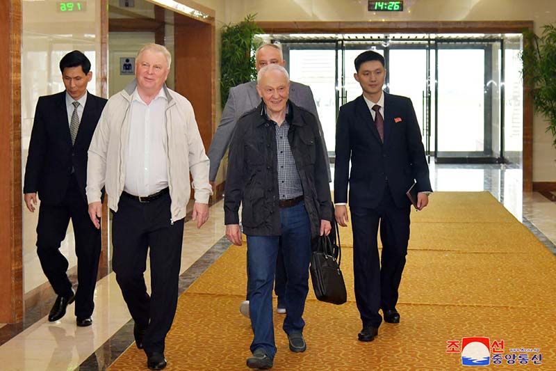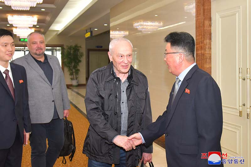 朝鮮・ロシア友好議員団団長の保健省医学研究院のリ・チョル院長とロシア連邦のアレクサンドル・マツェゴラ駐朝特命全権大使がピョンヤン国際空港に代表団を出迎えました。
