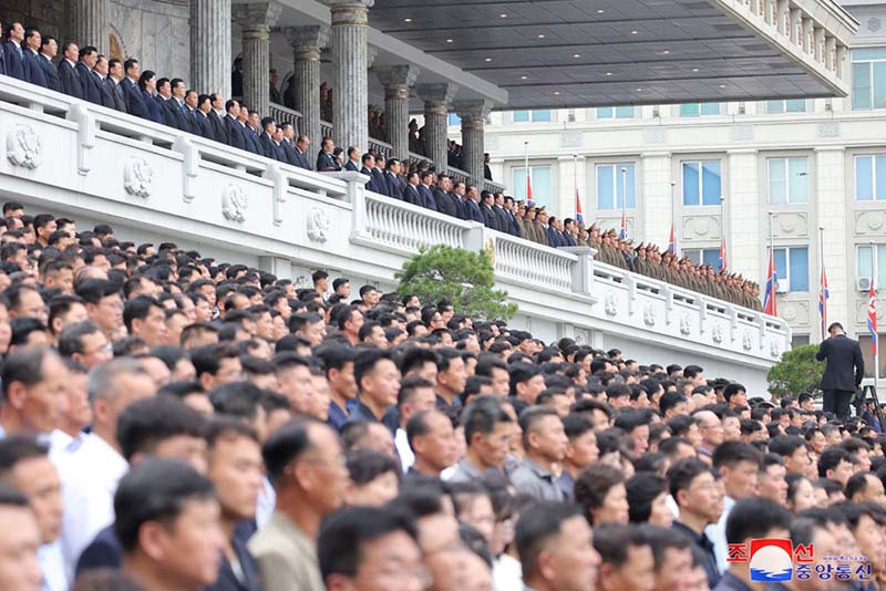 追悼大会には、党中央委員会の活動家と内閣、勤労者団体、各省、中央機関の活動家、朝鮮人民軍および社会安全軍の将兵、ピョンヤン市内の機関、工場、企業の活動家と勤労者、青年学生が参加しました。
