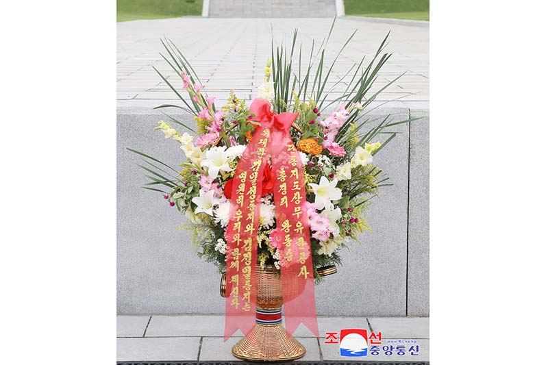 朝鮮労働党中央委員会、朝鮮民主主義人民共和国国務委員会、朝鮮民主主義人民共和国最高人民会議常任委員会、朝鮮民主主義人民共和国内閣の名義による花籠が献じられました。