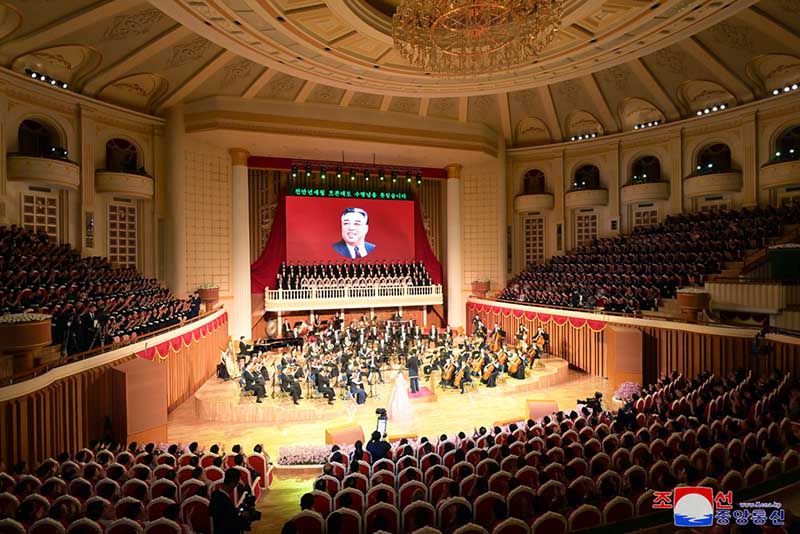 金日成主席の革命思想と不滅の業績は、強国朝鮮の万年の大計を裏付ける貴い財産であるという哲理を格調高く謳歌した音楽会は、全人民的な頌歌「主席はいつもわれらとともに」で絶頂を成しました。
