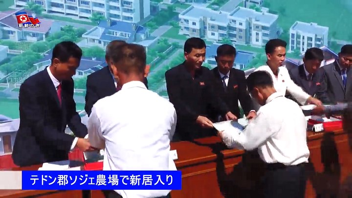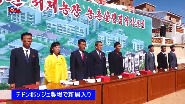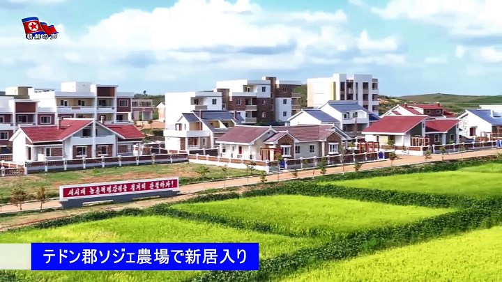 モダンな平屋と低層住宅が一服の絵のように美しい村の全景を喜びの中眺めながら農業勤労者は、人民の全ての願いを叶えてくれる労働党の恩恵を肌で感じました。