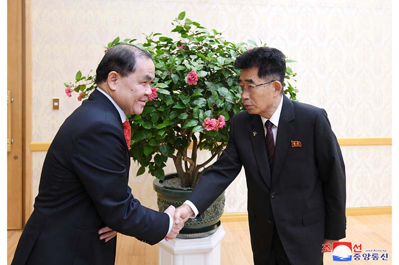 朝鮮労働党中央委員会キム・ソンナム国際部長が24日、マンスデ議事堂でケウ・マッカパン駐朝ラオス人民民主共和国新任特命全権大使の表敬訪問を受け、懇談しました。