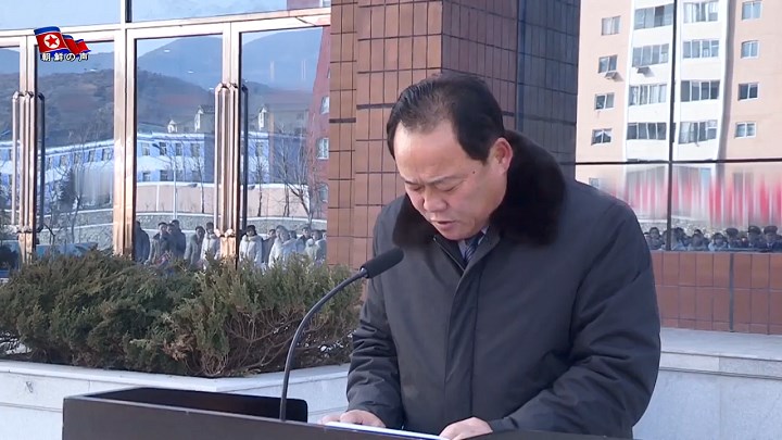 竣工式で発言者は「活動家と勤労者の皆は全人民科学技術人材化の旗を高く掲げて、我が国家の全面的興隆・発展を早める為の人民挙げての大進軍を一層力強く推し進めるべきだ」と述べました。