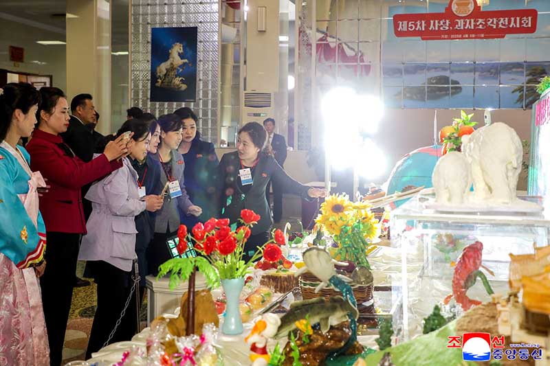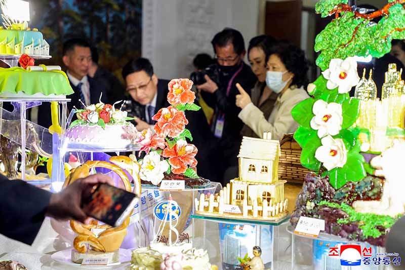 展示会には、ピョンヤン市内のレストランと対外サービス部門、食品工場で作った1000余りのキャンディーとビスケットの彫刻などが出品されました。