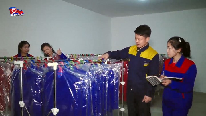 新義州校服工場では生産と経営活動の科学化に力を入れると共に大衆の創意性に働きかけて、制服の生産性と質を共に高めています。