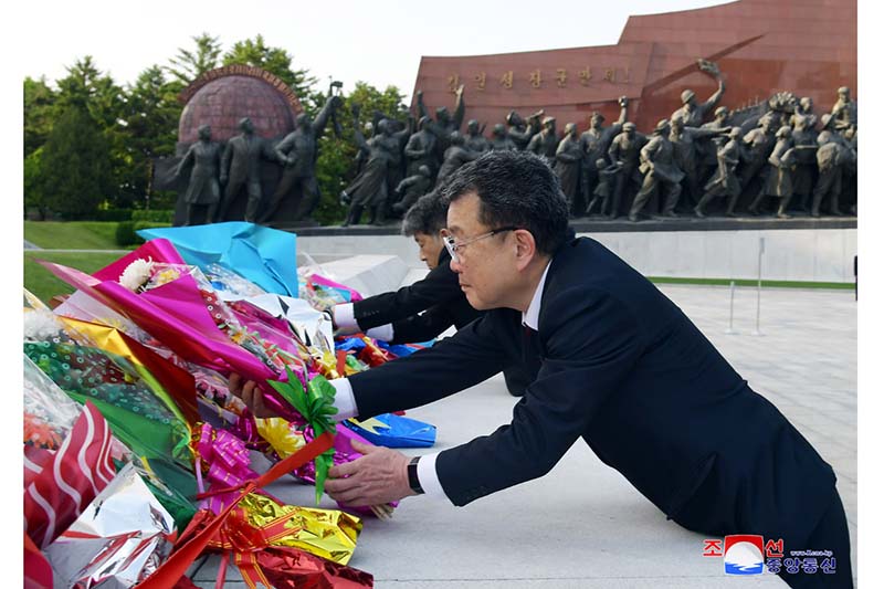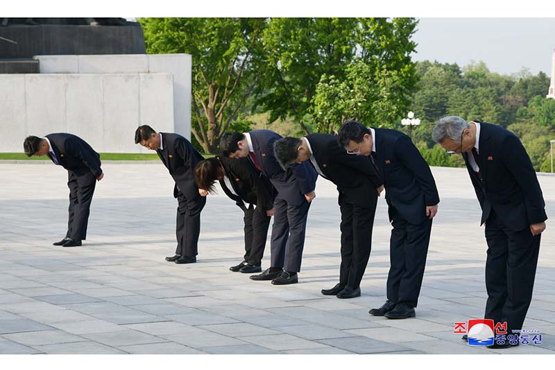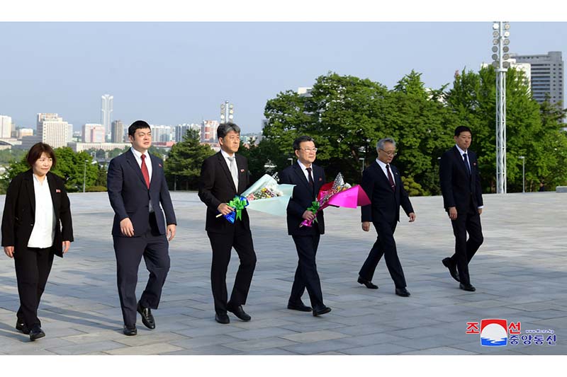 20日、総聯結成70周年在日本朝鮮人感謝団がマンスデの丘の偉大な金日成主席と偉大な金正日国防委員長の銅像に敬意を表しました。