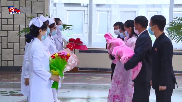 先日、平壌産院から両江道甲山郡の女の子の三つ子が退院しました。