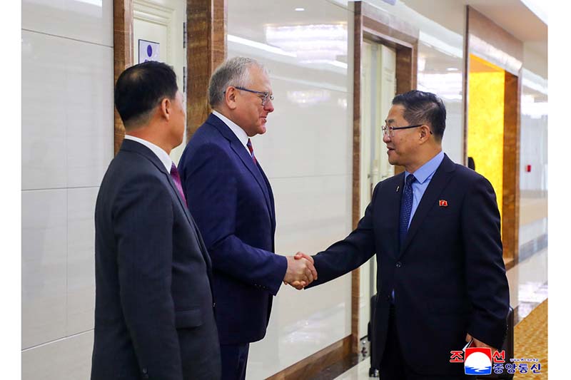 ピョンヤン国際空港でリ・チャンシク副教育相とアレクサンドル・マツェゴラ駐朝ロシア連邦特命全権大使が見送りました。