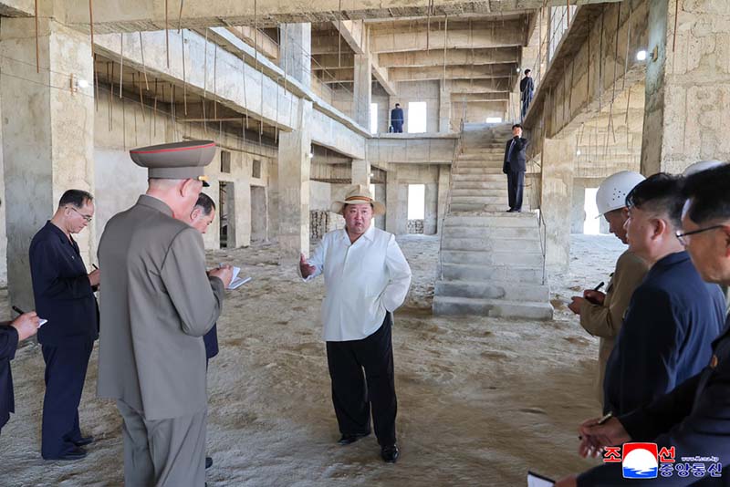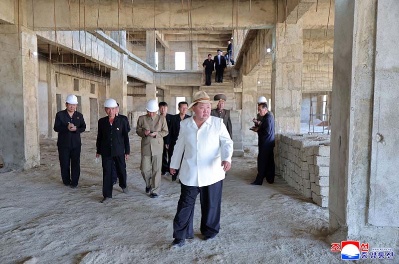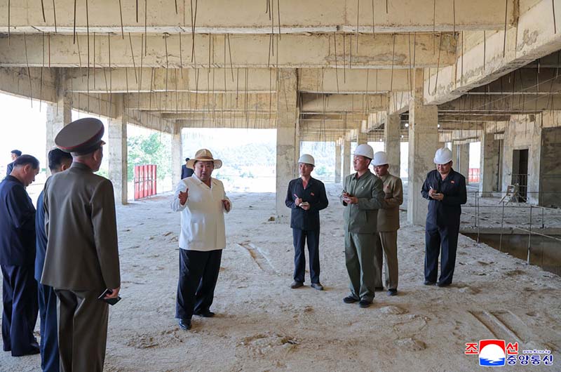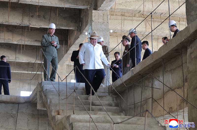 金正恩総書記は、建設現場を見て回りながら建設進捗状況を具体的に確認した。