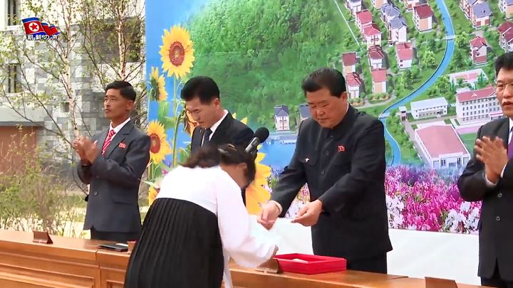 新居入りの集いには朝鮮労働党羅先市委員会の申永鉄(シン・ヨンチョル)責任書記、市内の幹部達、羅先穀物管理所管轄の洪儀農畜産物生産分事業所の従業員が参加しました。