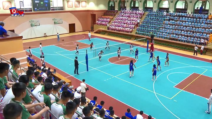 朝鮮労働党中央委員会の幹部達と青年同盟・武力機関の人、革命学院の教職員と生徒が競技を観戦しました。