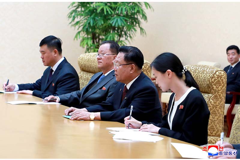 朝鮮労働党中央軍事委員会副委員長である党中央委員会の朴正天(パク・チョンチョン)書記と朝鮮民主主義人民共和国の努光鉄(ノ・グァンチョル)国防相が同行しました。