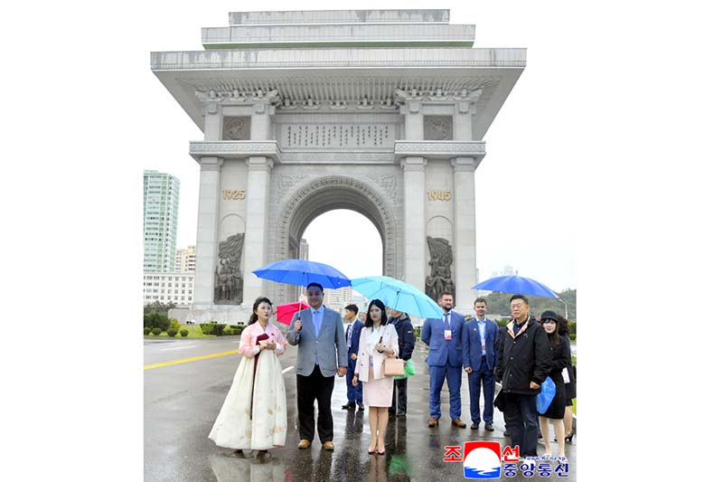 金日成・金正日基金総会代表団がチュチェ思想塔を見ました