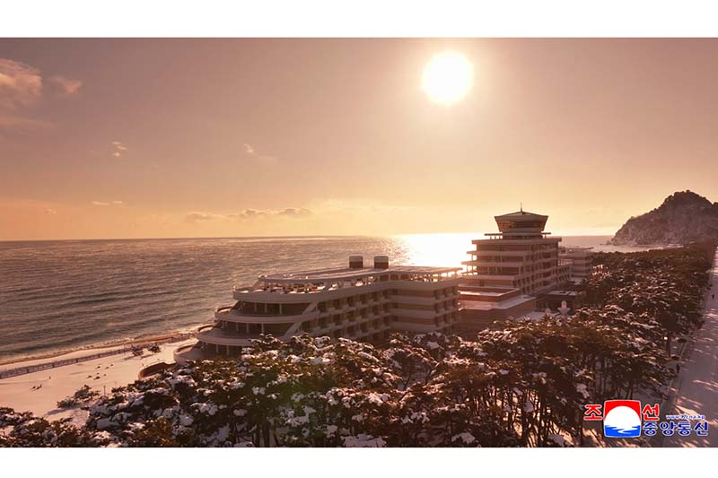 昔から景勝地として有名なこの地区に、数百人の収容能力と映画館、商店、電子娯楽場、遊泳場など総合的なサービス施設が揃うヨムブンジン海洋旅館と海水浴場などが立派に建設され、人民が海岸地域の趣を満喫し、社会主義の文明を思う存分享受するまた一つの憩いの場が築かれました。