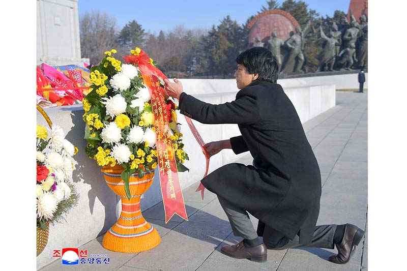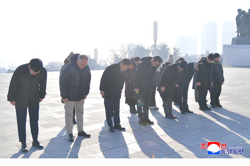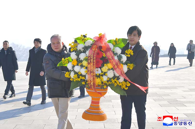 朝鮮民主主義人民共和国とベトナム社会主義共和国の間の外交関係樹立76周年に際して1月31日、レ・バ・ビン駐朝ベトナム特命全権大使と大使館員がマンスデの丘の偉大な金日成主席と偉大な金正日国防委員長の銅像に花かごを捧げました。
