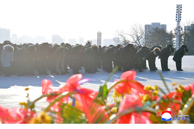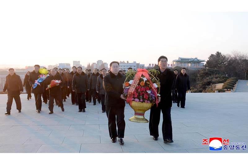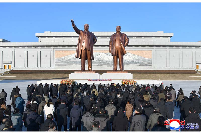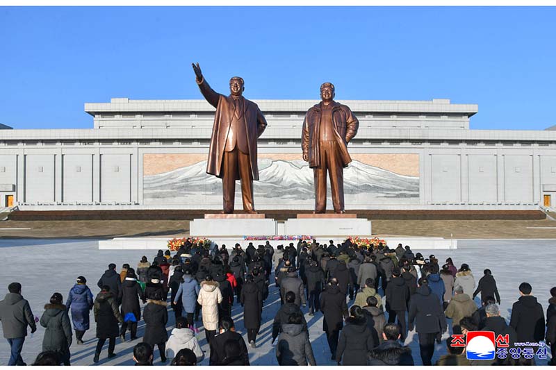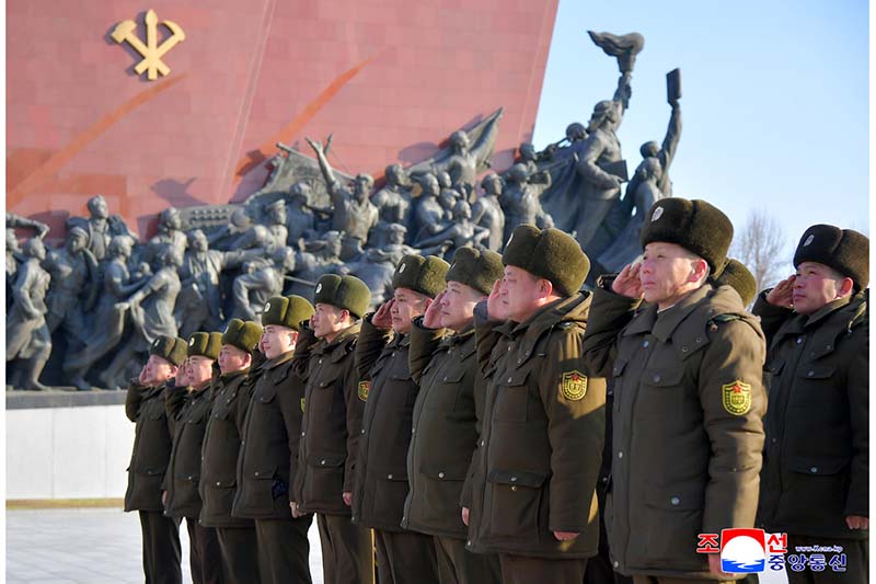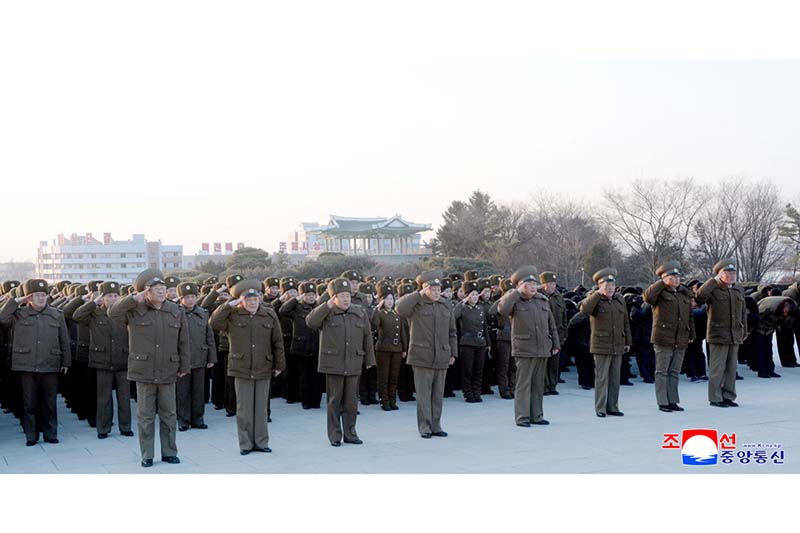 偉大な金日成主席と偉大な金正日国防委員長の銅像に人民軍軍人と勤労者、青少年が花かごを捧げました